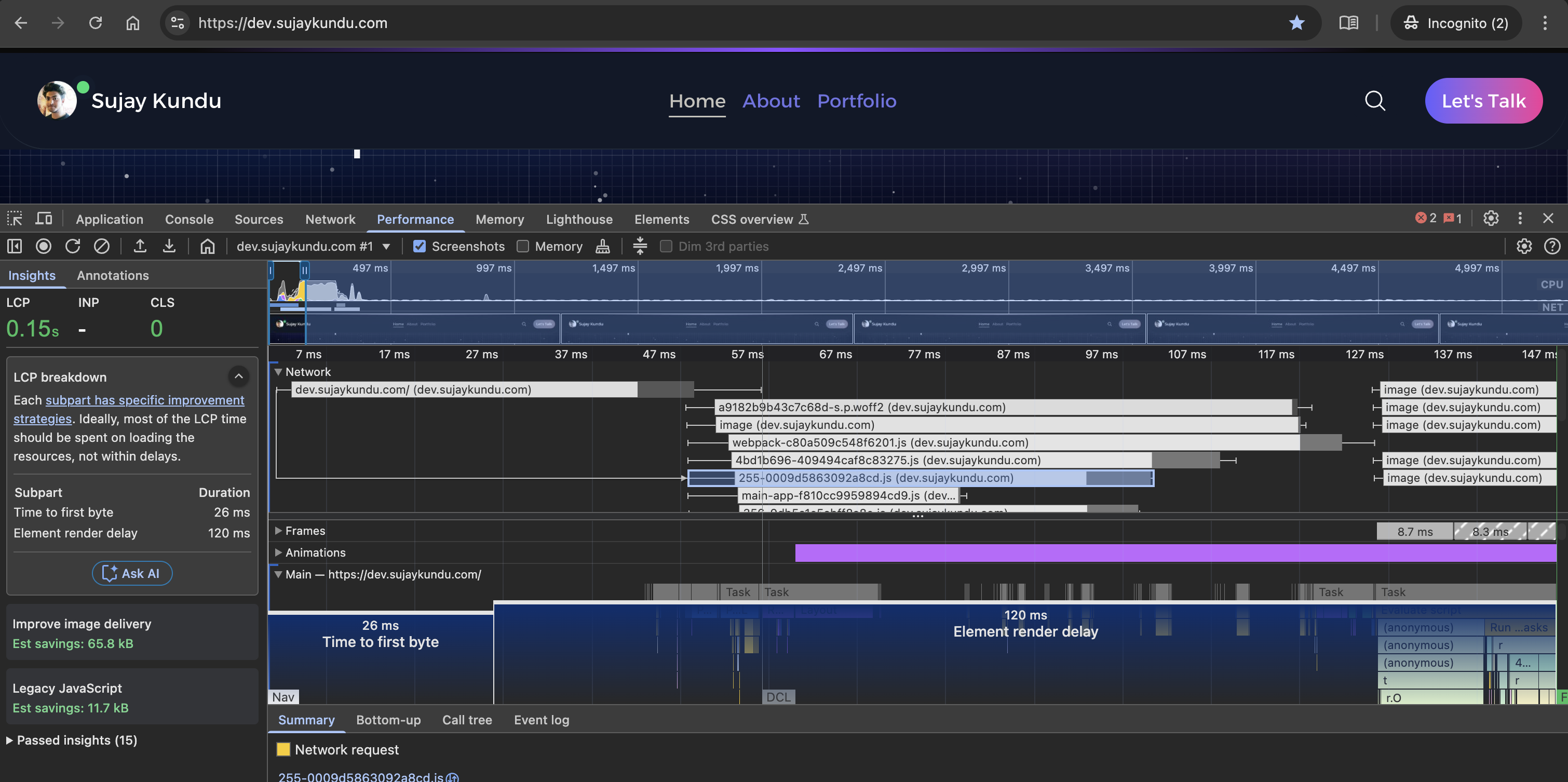 So in this part, I will discuss how I optimized the JS load time of my website to improve the overall performance.