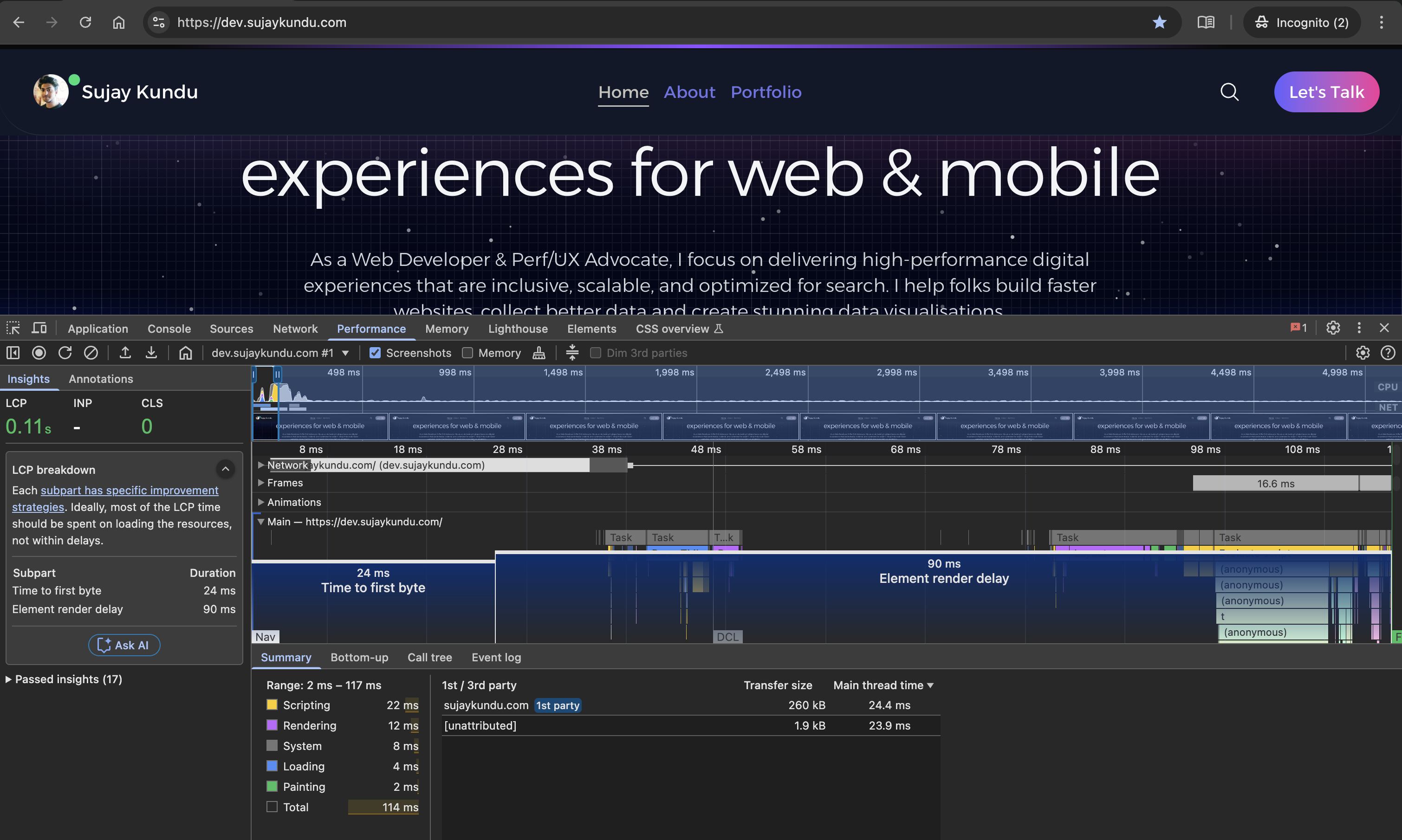 In the last part of this series, I discussed how I fixed the LCP load time of my website and you might have observed that the Element Render Delay was around 630ms in the dev environment.