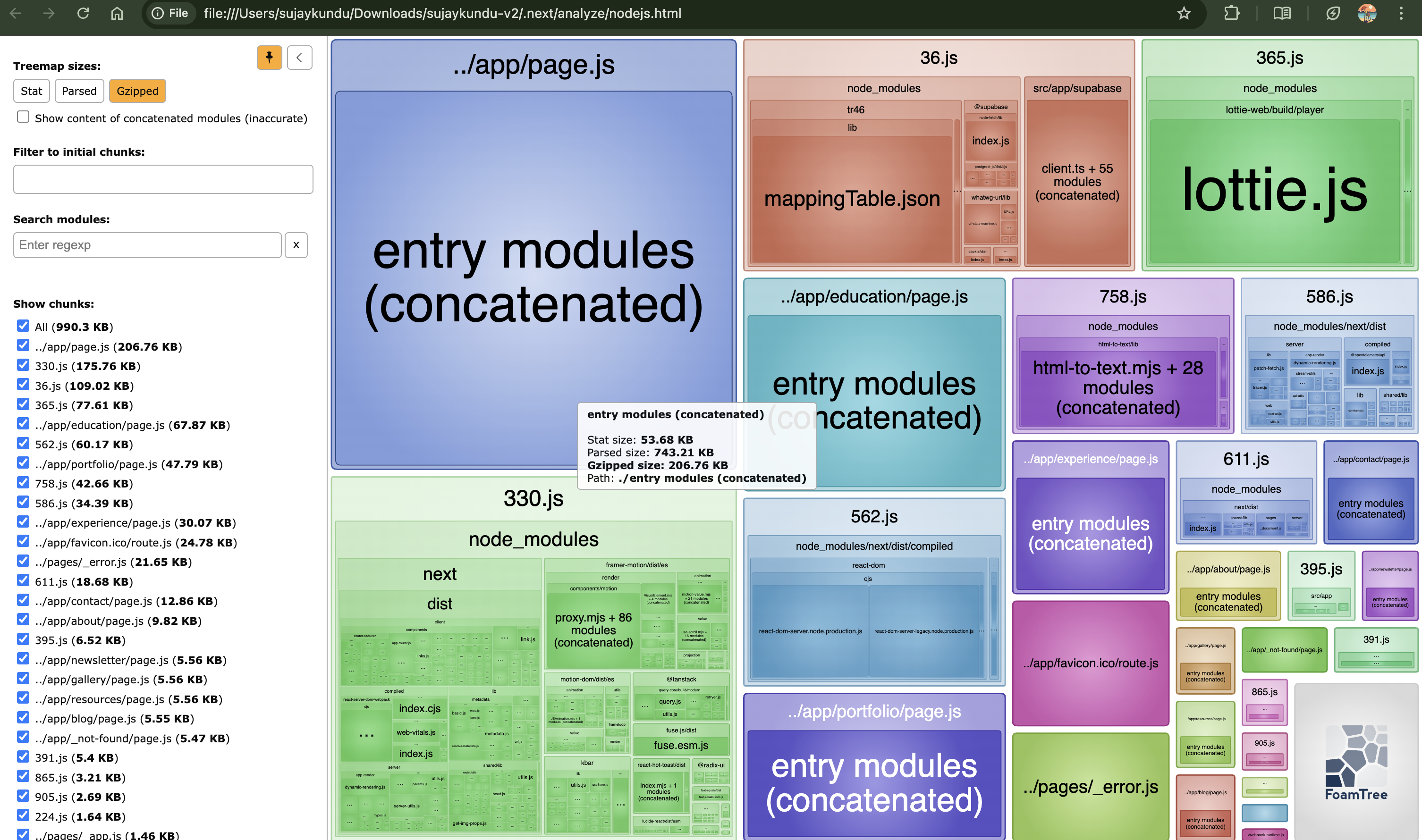 To check the JS bundle size, I used the Next.js Bundle Analyzer.